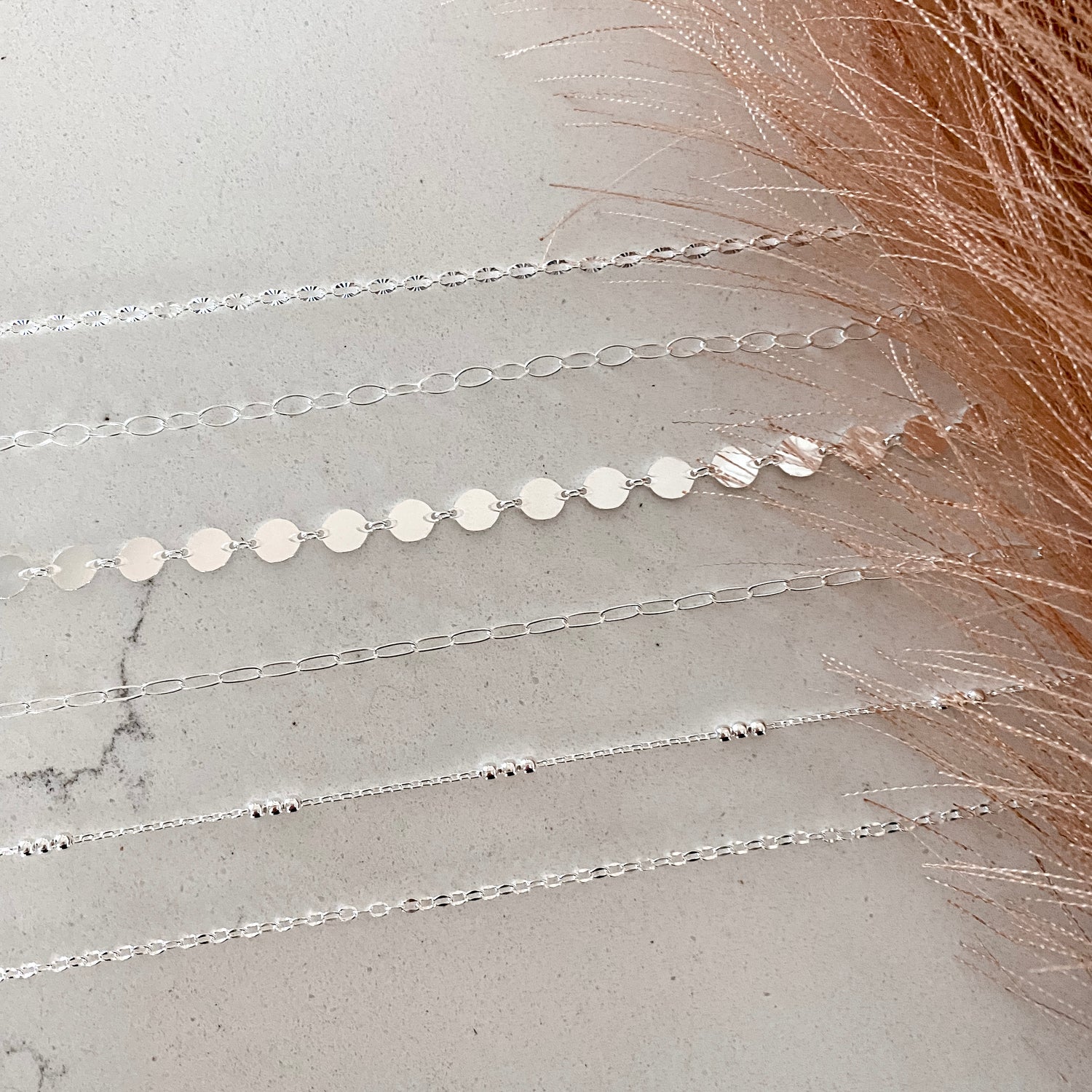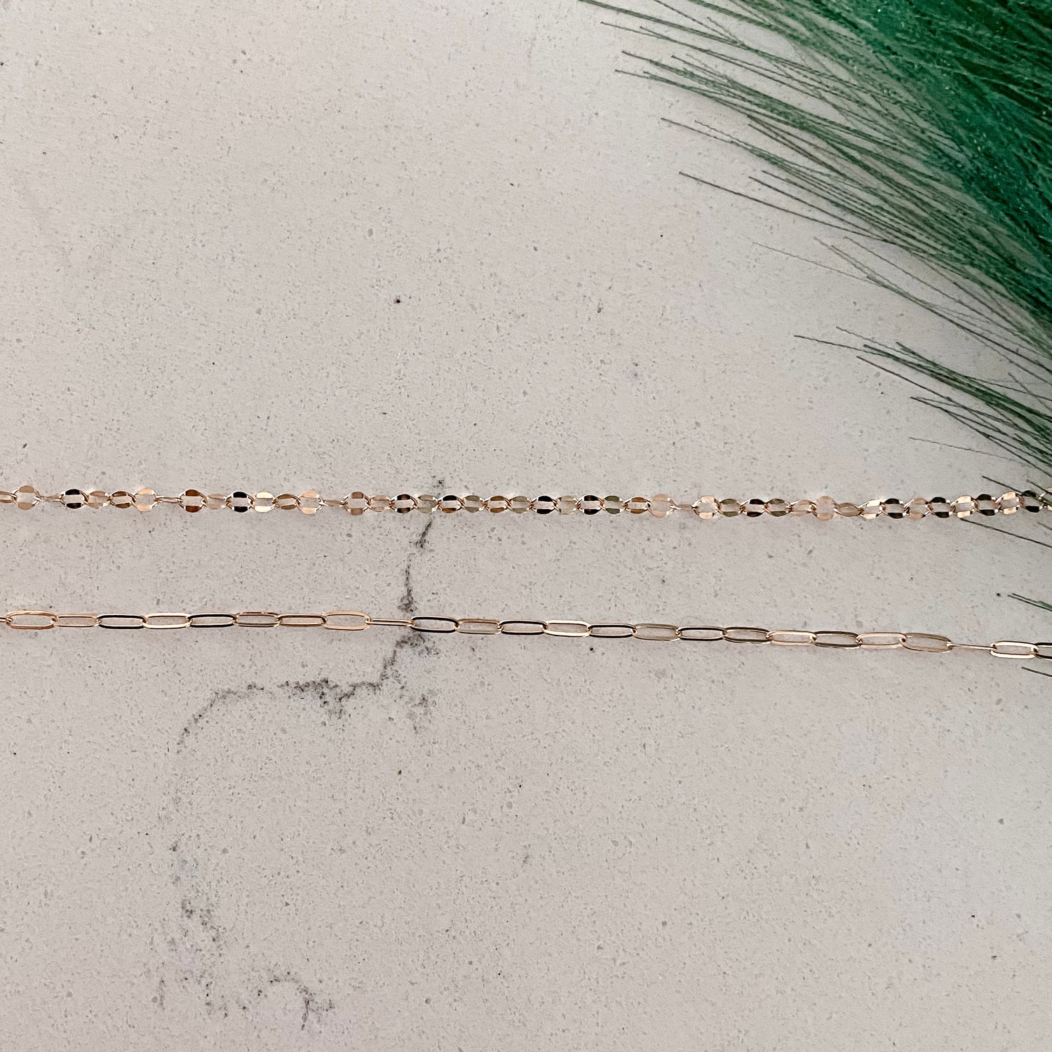 Permanent jewelry is a custom-fit bracelet, anklet, or necklace. It is designed specifically to represent a special friendship, memory, event, or simply for fun. The selection includes chains made from solid 14k gold, sterling silver, 14k gold filled, and enamel with the option to add a charm or connector.